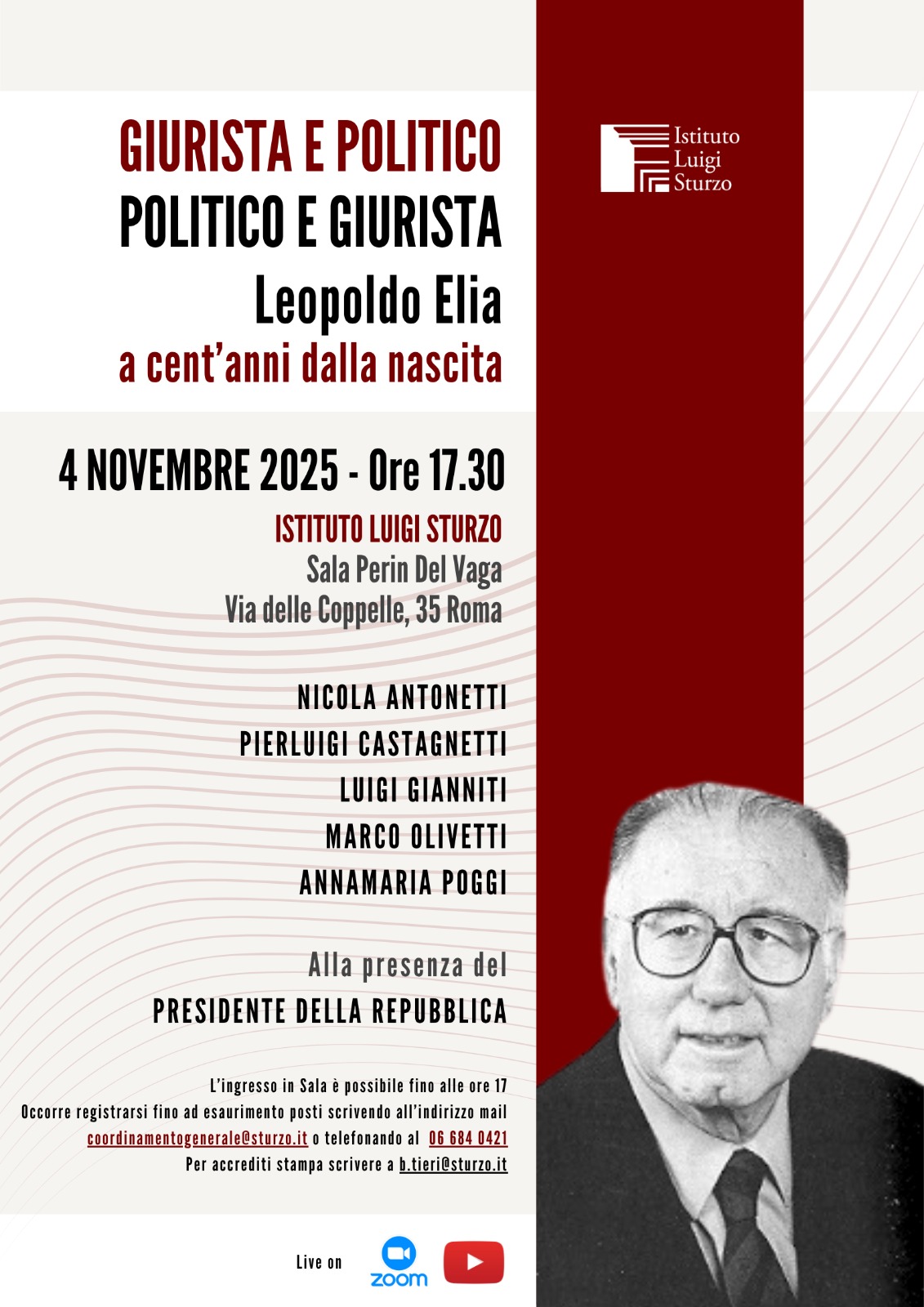 “Giurista e politico, politico e giurista. Leopoldo Elia a cento anni dalla nascita” – Convegno